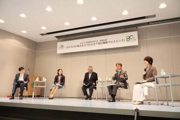 午前中には、同窓経営者の会による特別企画「岩手大学の魅力をどう伝える? 発信戦略クロストーク」を実施。岩手大学の魅力を再発見し、どのように発信し共感を広げるかをテーマに、卒業生と大学の連携や広報戦略、創立80周年事業を盛り上げるためのアイデアが共有されました。